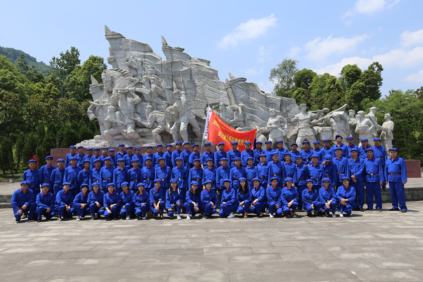 全体参训学员在红军群雕“铁血丹心”前拍照留念