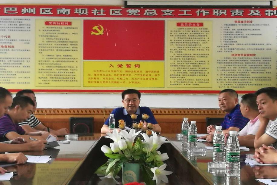 市委政法委常务副书记罗之琼听取南坝社区干部介绍创文工作开展情况